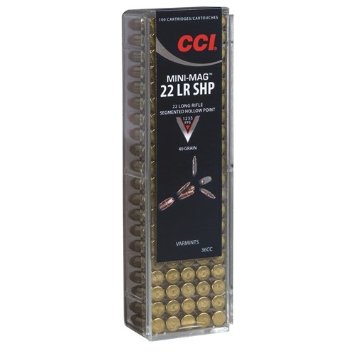 CCI Mini-Mag 22 Long Rifle Ammo 40 Grain Segmented Hollow Point ammo review offers the following information; Delivering an explosive and accurate performance over and over again with incredibly reliable ammunition is what CCI Ammunition is known for among hunters and target shooters alike! For over 50 years shooters have counted on CCI for all of their rimfire ammunition needs, and CCI has always delivered. CCI Mini-Mag 22 Long Rifle ammunition is the best rimfire ammo in the shooting industry currently on the market! This Mini-Mag round was CCI’s first rimfire product and continues to be their most popular, withstanding the test of time. CCI Mini-Mag 22 Long Rifle is new production, non-corrosive ammunition that features CCI sure-fire primer and brass cases. This CCI Mini-Mag ammunition is loaded with a 40 grain Copper Plated Lead Hollow Point Segmented bullet. The copper plated lead hollow point bullet provides outstanding performance for a variety of uses including small game and varmint hunting. The hollow point bullet with the dimple-tip expands like big game bullets, giving shooters minimal meat and hide damage while still providing enough power and accuracy to get the job done. CCI Mini-Mag ammo features clean-burning propellants that help keeps semi-automatics cleaner longer. Mini-Mag round was CCI’s first rimfire product and continues to be their most popular after all these years. The 36 grain bullet offers excellent all-around performance for small game and varmints. The clean-burning propellant keeps semi-automatic actions clean for longer shooting sessions. This ammunition is new production and non-corrosive.