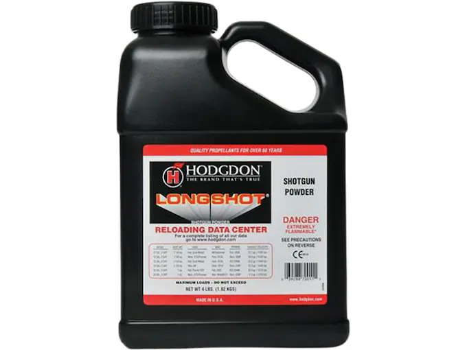 Hodgdon LONGSHOT spherical powder is the most versatile shotshell heavy field propellant Hodgdon has ever produced. Great loads in 10 ga., 12 ga., 16 ga., 20 ga., and 28 ga. are shown in Hodgdon’s Reloading Data. This propellant provides true magnum velocities with superb patterns. In addition, LONGSHOT is the best choice for those competitors shooting games such as “Buddy”, “Annie Oakleys” and more. LONGSHOT is the high velocity pistol choice in 38 Super, 40 S&W, and 357 SIG at lower than usual operating pressures.