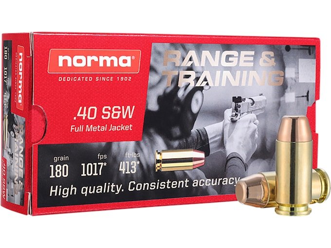 Norma Range & Training Ammunition 40 S&W 180 Grain Full Metal Jacket