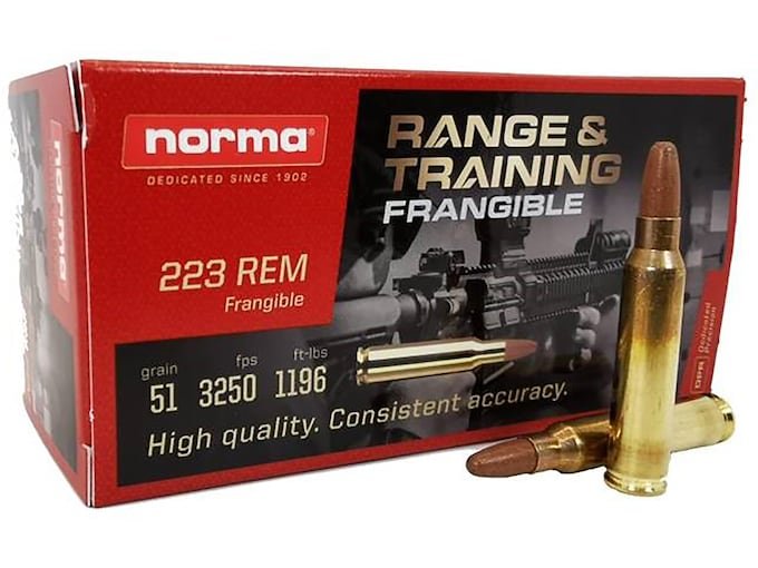 Norma Range & Training Frangible Ammunition 223 Remington 51 Grain Frangible Round Nose Box of 50