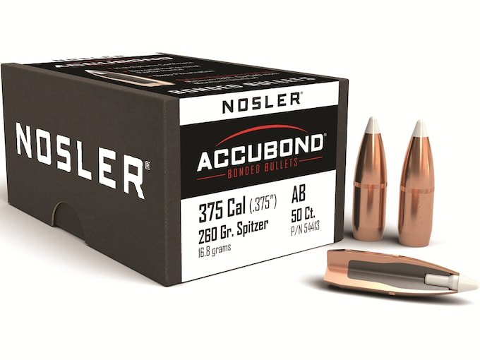 Nosler AccuBond Bullets 375 Caliber (375 Diameter) 260 Grain Bonded Spitzer Boat Tail Box of 50