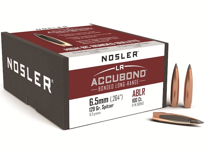 Nosler AccuBond Long Range Bullets 264 Caliber, 6.5mm (264 Diameter) 129 Grain Bonded Spitzer Boat Tail Box of 100