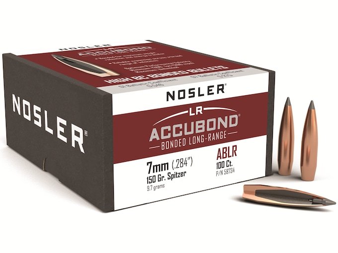 Nosler AccuBond Long Range Bullets 284 Caliber, 7mm (284 Diameter) 150 Grain Bonded Spitzer Boat Tail Box of 100