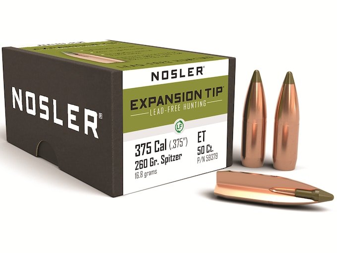 Nosler E-Tip Bullets 375 Caliber (375 Diameter) 260 Grain Spitzer Boat Tail Lead-Free Box of 50