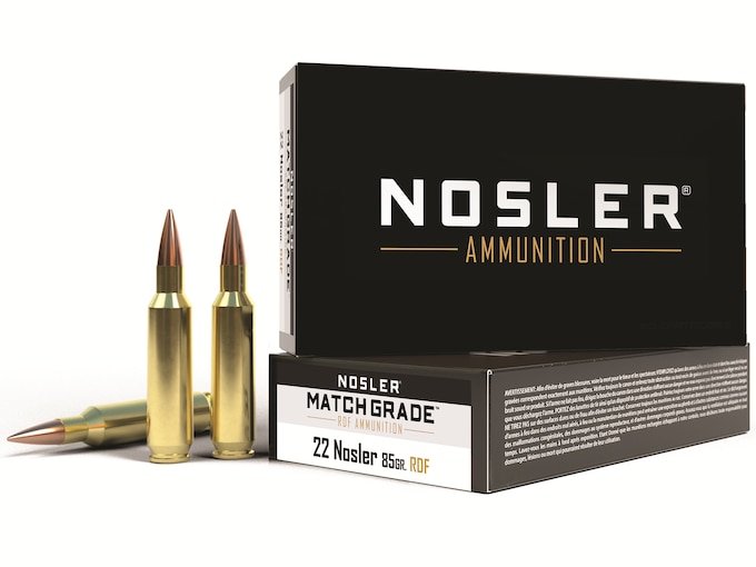 Nosler Match Grade Ammunition 22 Nosler 85 Grain RDF Hollow Point Boat Tail Box of 20