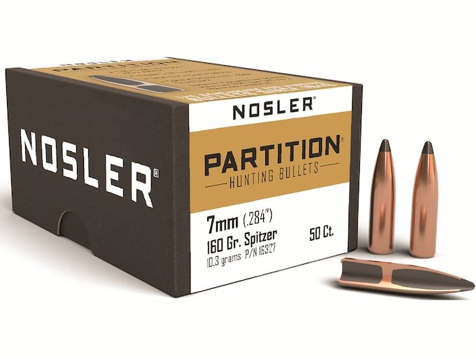 Nosler Partition Bullets 284 Caliber, 7mm (284 Diameter) 160 Grain Spitzer Box of 50