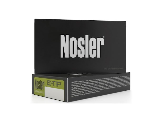 Nosler E-Tip ammunition is high quality, production-run ammunition manufactured to strict tolerances and inspected as it is hand-packaged. Nosler Ammunition features Nosler Custom brass and the dependable, high performing bullets you know and trust. This ammunition is new production, non-corrosive, in boxer primed, reloadable brass cases.