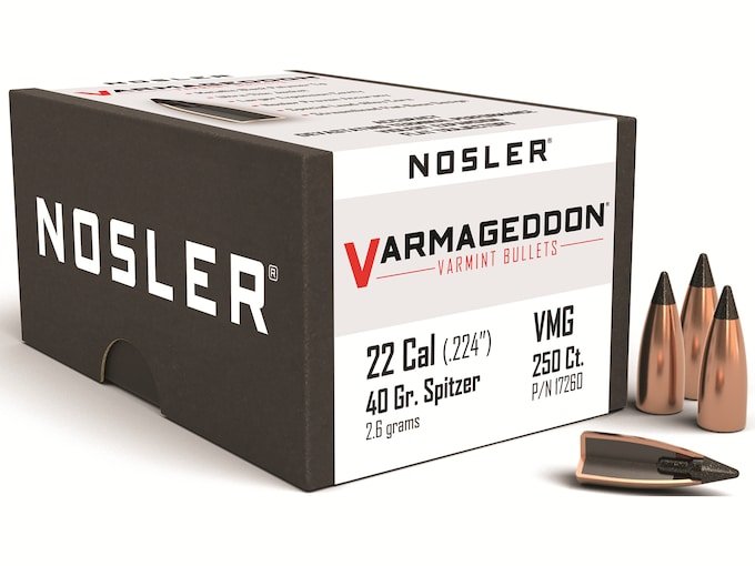 Nosler Varmageddon Bullets 22 Caliber (224 Diameter) 40 Grain Tipped Flat Base