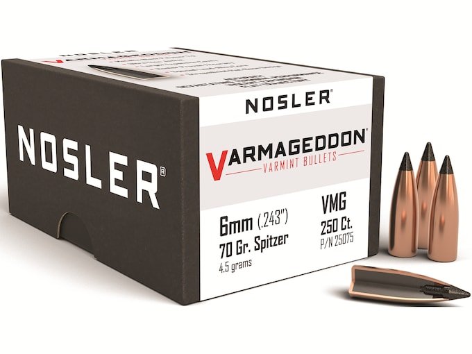 Nosler Varmageddon Bullets 243 Caliber, 6mm (243 Diameter) 70 Grain Tipped Flat Base