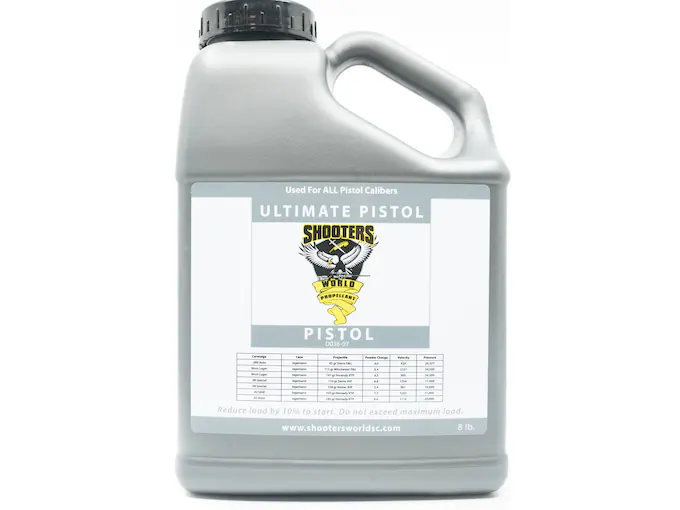 This propellant has no reloading powder exact equivalent. It is faster in burn rate than Accurate No.5, and slower in burn rate than Accurate No.2. This propellant is designed and tested to work with BOTH lead-free and standard lead styphnate primers. Shooters World, LLC distributes this propellant because of its unique capability to ignite well with lead-free primers. It is perhaps the most versatile of all pistol propellants across the .380 Auto, 9mm Luger, .40 Smith and Wesson, .38 Special, 38 Super, and .45 Automatic calibers. From a competition standpoint, this propellant has the burn rate similar to Winchester Autocomp. However, Autocomp has a burn rate modifier that can impede reliable and consistent ignition. The burn rate modifier of D036-07 is incorporated within the propellant grain, and will provide more reliable ignition and consistency in velocity, than other propellants of this burn rate. The gas generation rate of this propellant should enable 9mm Luger, .380 Automatic, .45 Auto, .38 Super, and .40 S&W loaders to reach “self defense” velocities, while maintaining reasonable pressure levels. A spherical propellant, it meters through charge plates consistently and will work with a high-speed loader with very good flow. It does contain a level of flash suppressant.